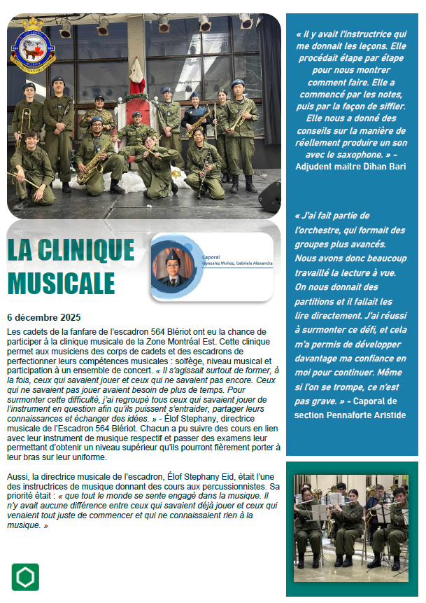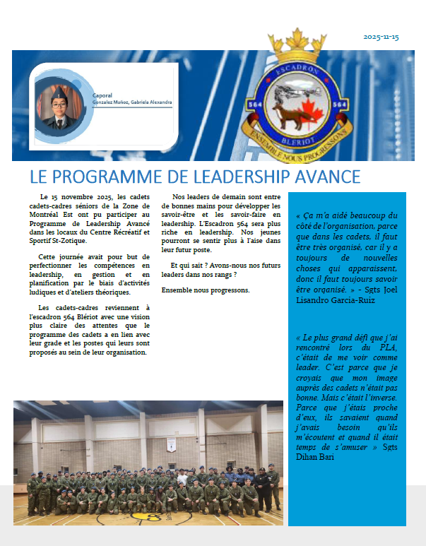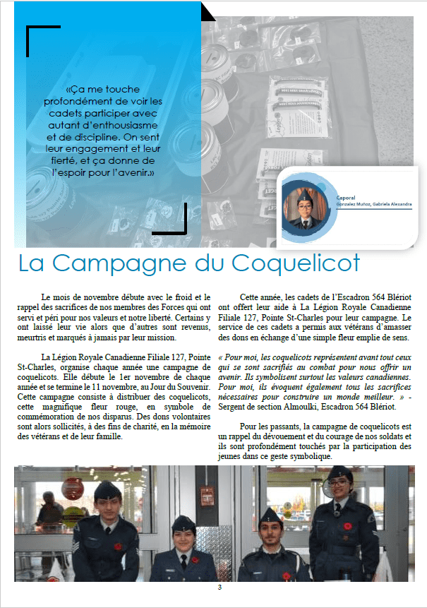 Voici vos articles créées par votre cadet-reporter 564, la Sgt Elyanna Hersant